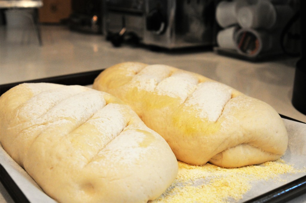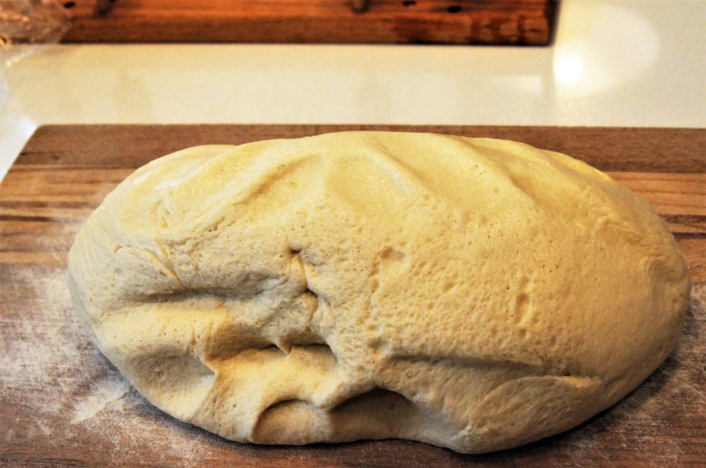 The recipe I used calls for bread flour but we had only multipurpose flour in the pantry. The Chef said, That’ll do fine. He was also correct about that.