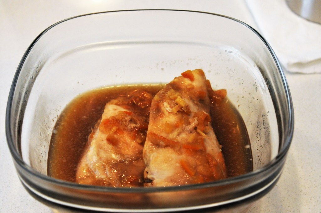 secret’s in the sauce: the ginger-marmalade marinade imparts a wonderful, spicy flavor to the broth