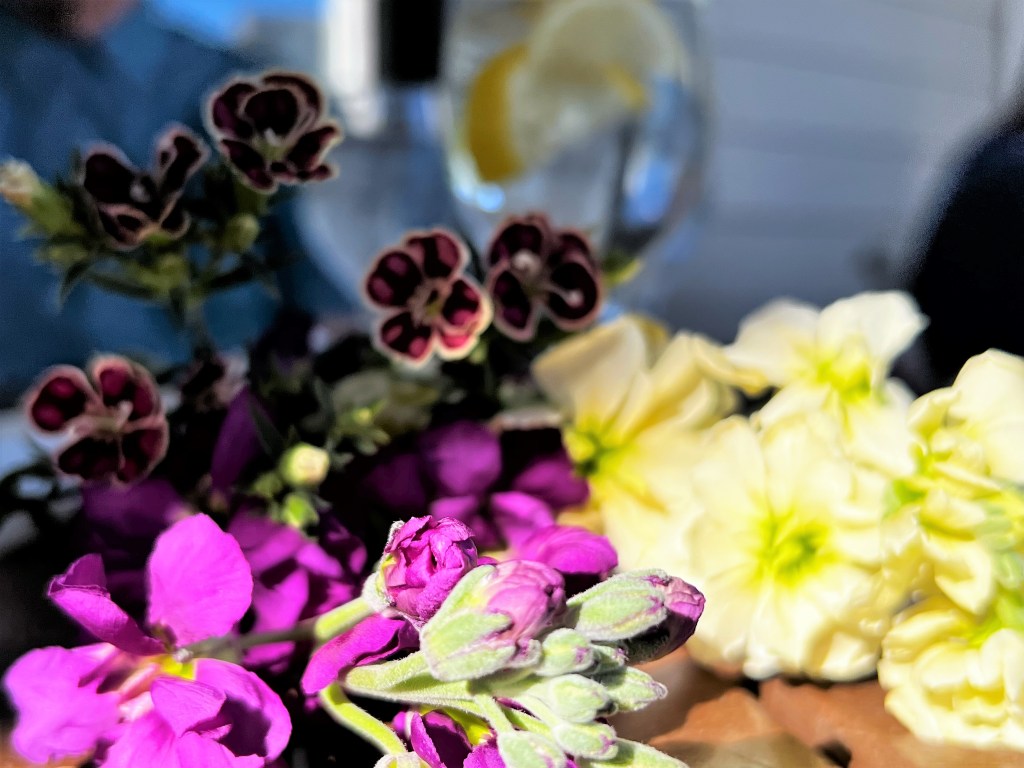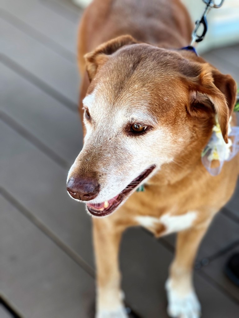 A few people, strangers out for a walk on an exquisite Saturday afternoon, stopped and watched. A young mother stood nearby with infant twins in a stroller, one wide awake and the other sleeping, and a black Lab puppy cradled in her arms (“we have a lot going on right now,” she told us); she smiled through the entire brief ceremony. Afterwards, everyone we passed offered their congratulations, and when we had supper outdoors at a nearby eatery, all the patrons on the deck applauded as we walked by. We had a nice early supper and chatted with the young family seated next to us; their boy, about age five, waxed poetic about the difference between crocodiles and alligators while his toddler sister squealed with delight. They had their dog with them too, and so Scoutie had some canine companionship while he was hand fed bits of blackened fish under the table.
