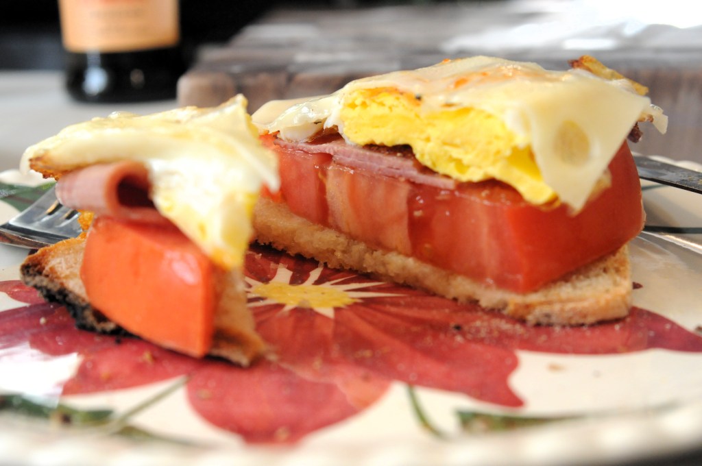 I’ve been losing myself in music, art, books, ballet, and especially the nostalgia that seems always to emerge this time of year before it goes back into boxes, the figurative and literal ones. Nostalgia crept into my thinking this morning in fact, after my run and before I baked corn bread. Instead of my usual egg whites breakfast I decided to throw caution to the wind and make something more sinister my great-grandmother Gracie might’ve eaten, slightly modified. Fried egg and bacon on buttered toast. She’d have used real bacon instead of the reduced-sodium turkey bacon in my fridge and would’ve lit up a Viceroy to go with her breakfast and black coffee. I sliced the tomato extra thick in homage to her, the woman who could happily make lunch of an entire tomato, sliced and liberally salted.